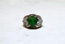 Bague or jaune émeraude synthétique diamants