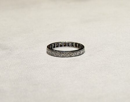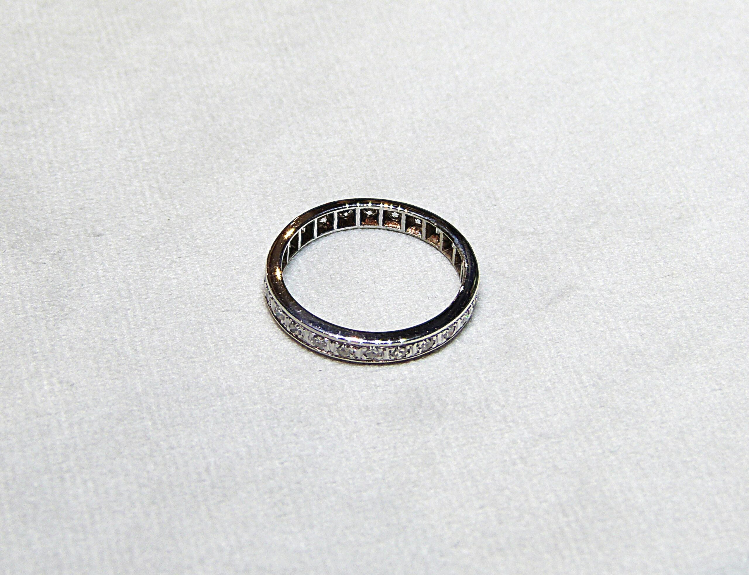 Alliance en or gris 750/1000ème ( 18 k ) sertie de 24 diamants taille 8/8 pesant ensemble 0,80 carat environ.