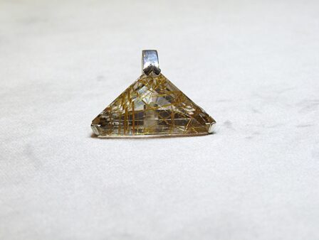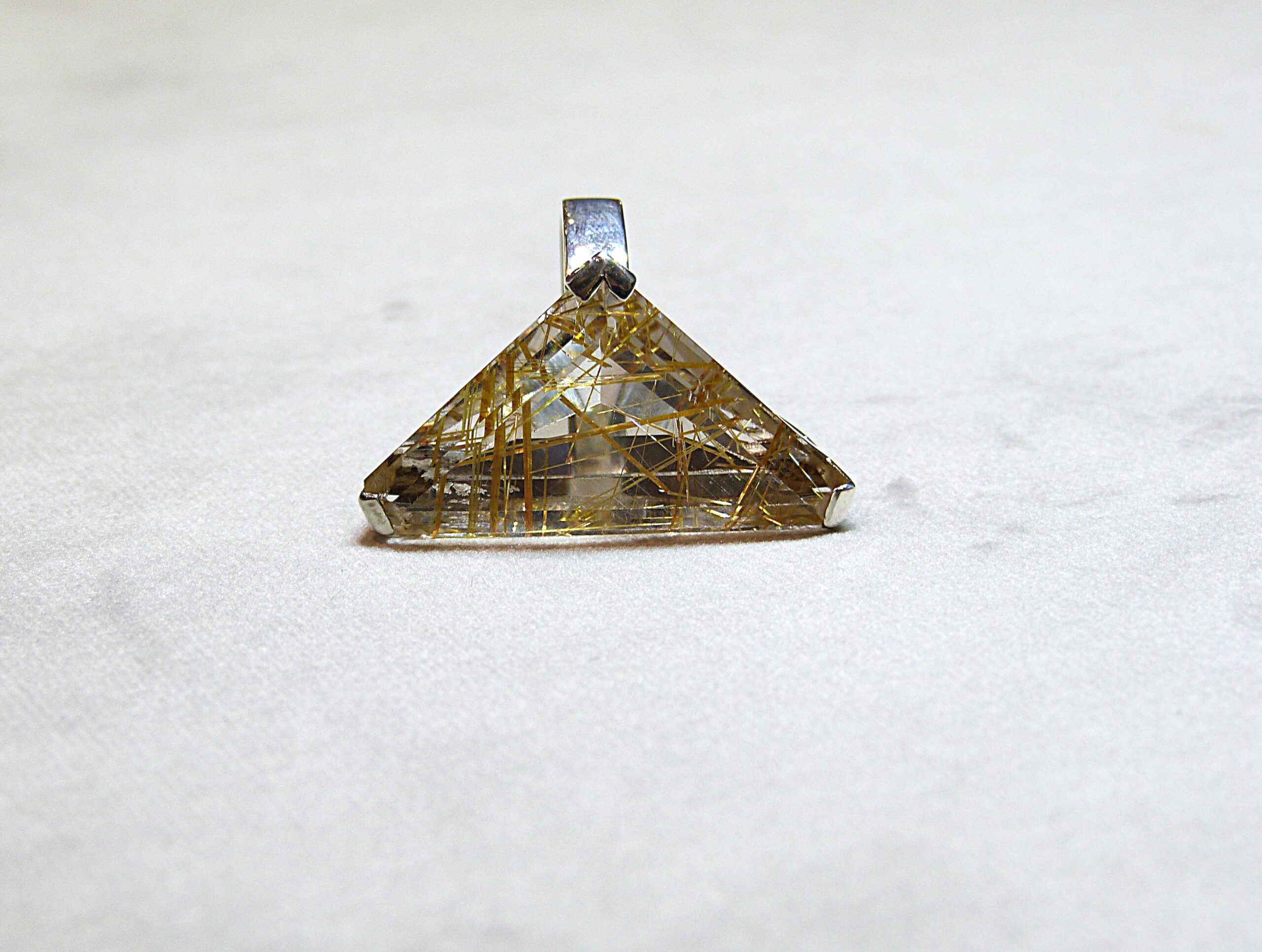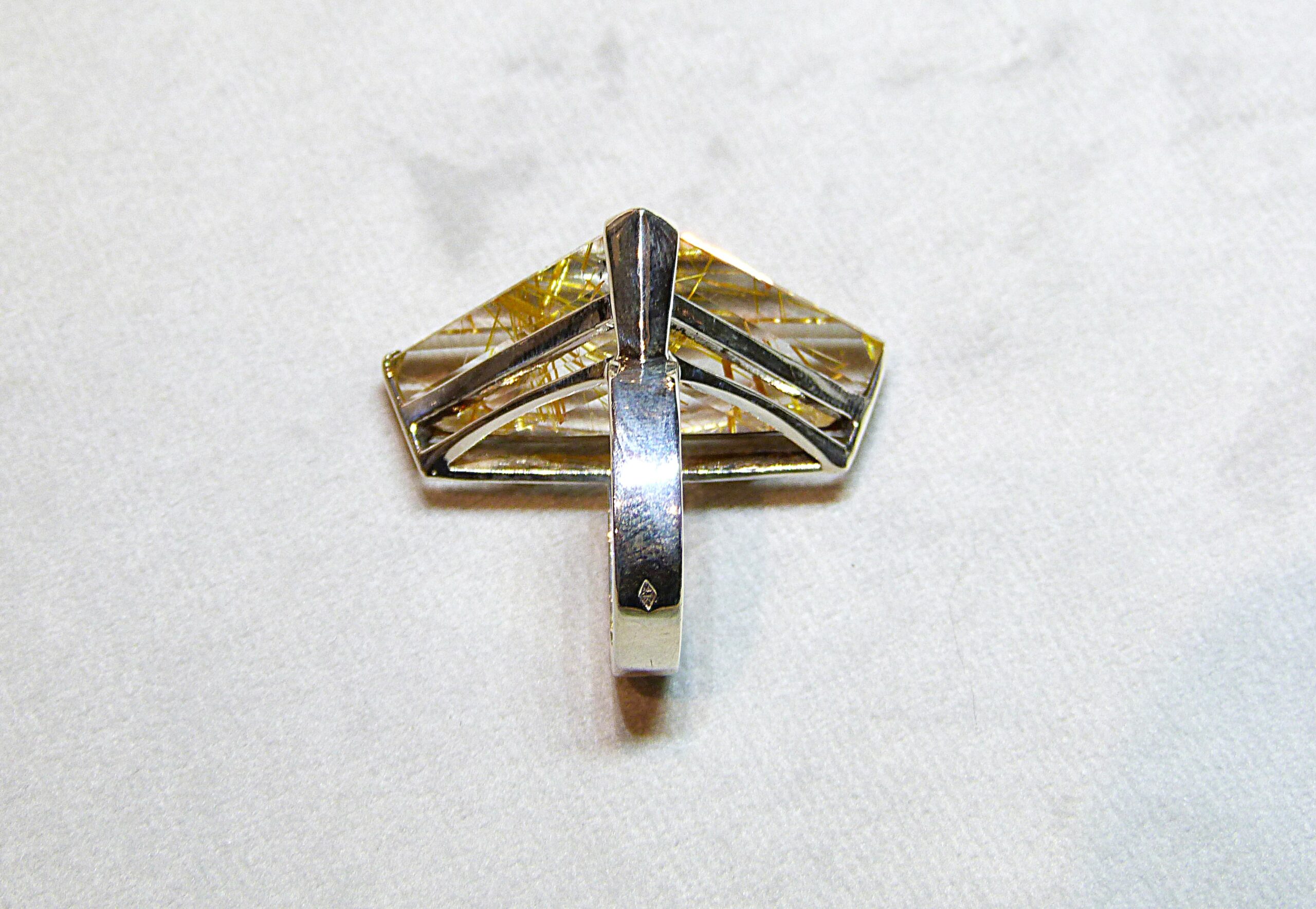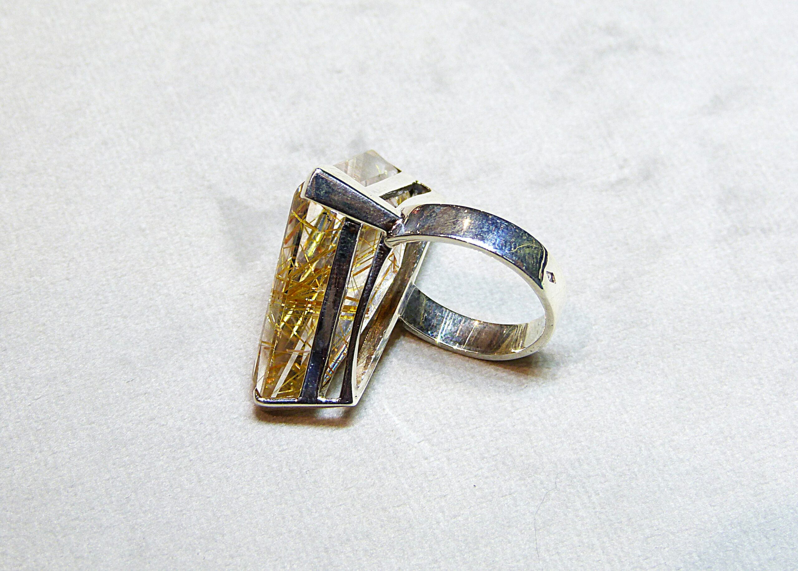 Bague en argent 800/1000ème sertie d’un quartz rutilé taillé en triangle.
