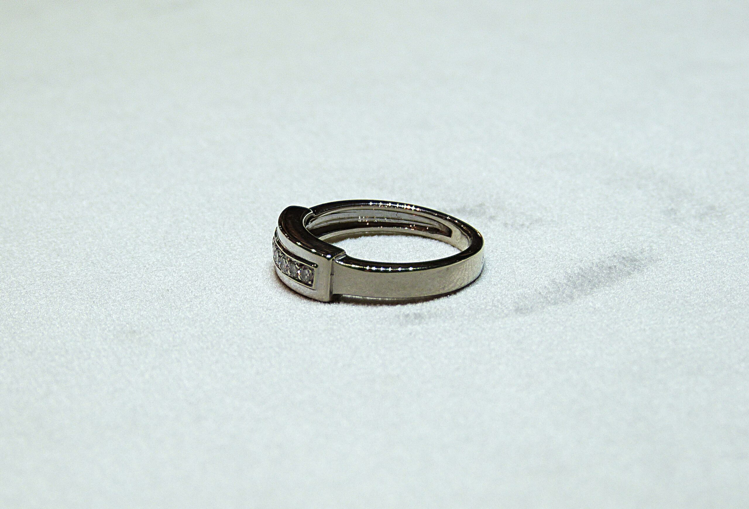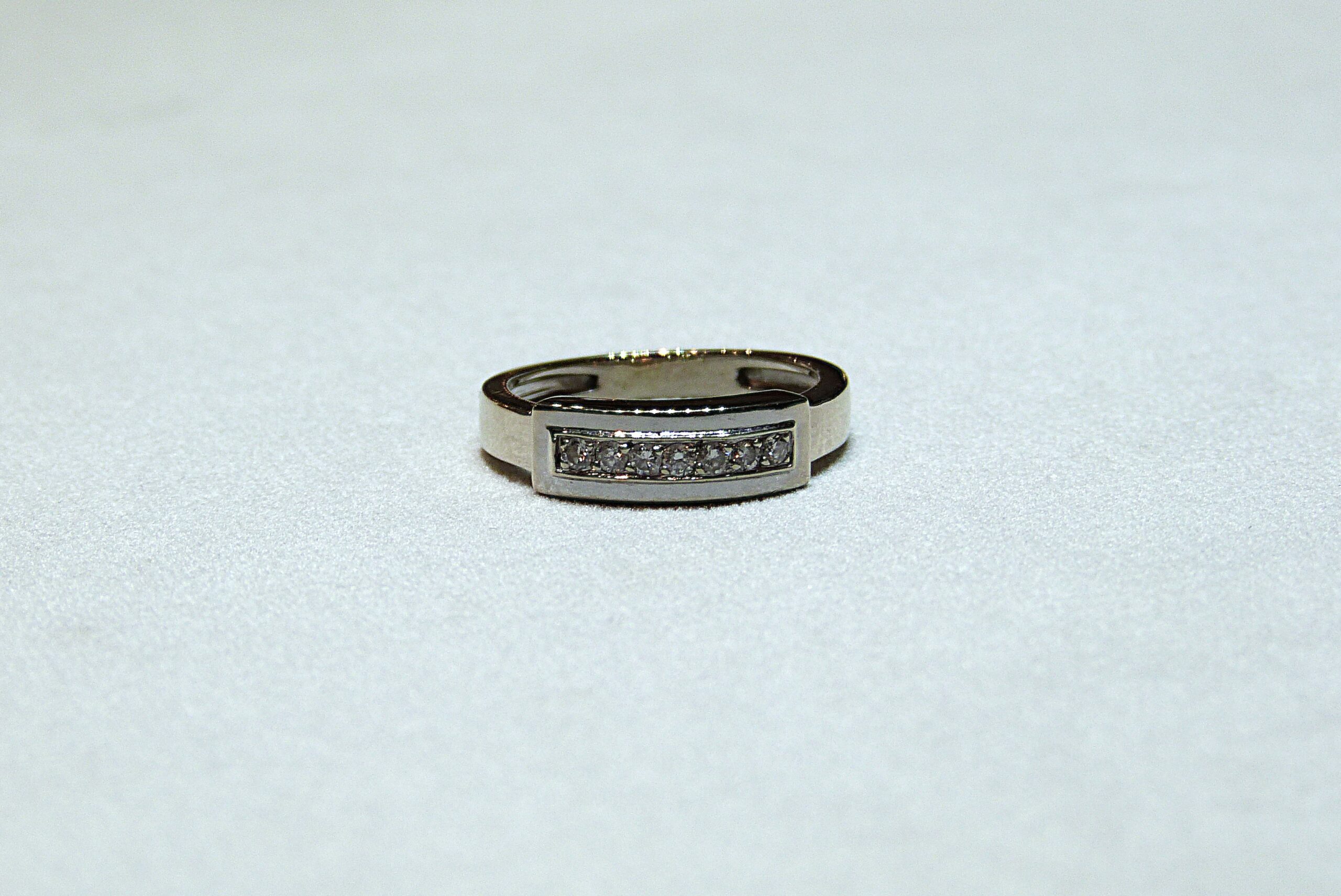 Bague rivière en or gris 750/1000ème ( 18 k )sertie de 7 diamants taille brillant pesant ensemble 0,14 carat environ.