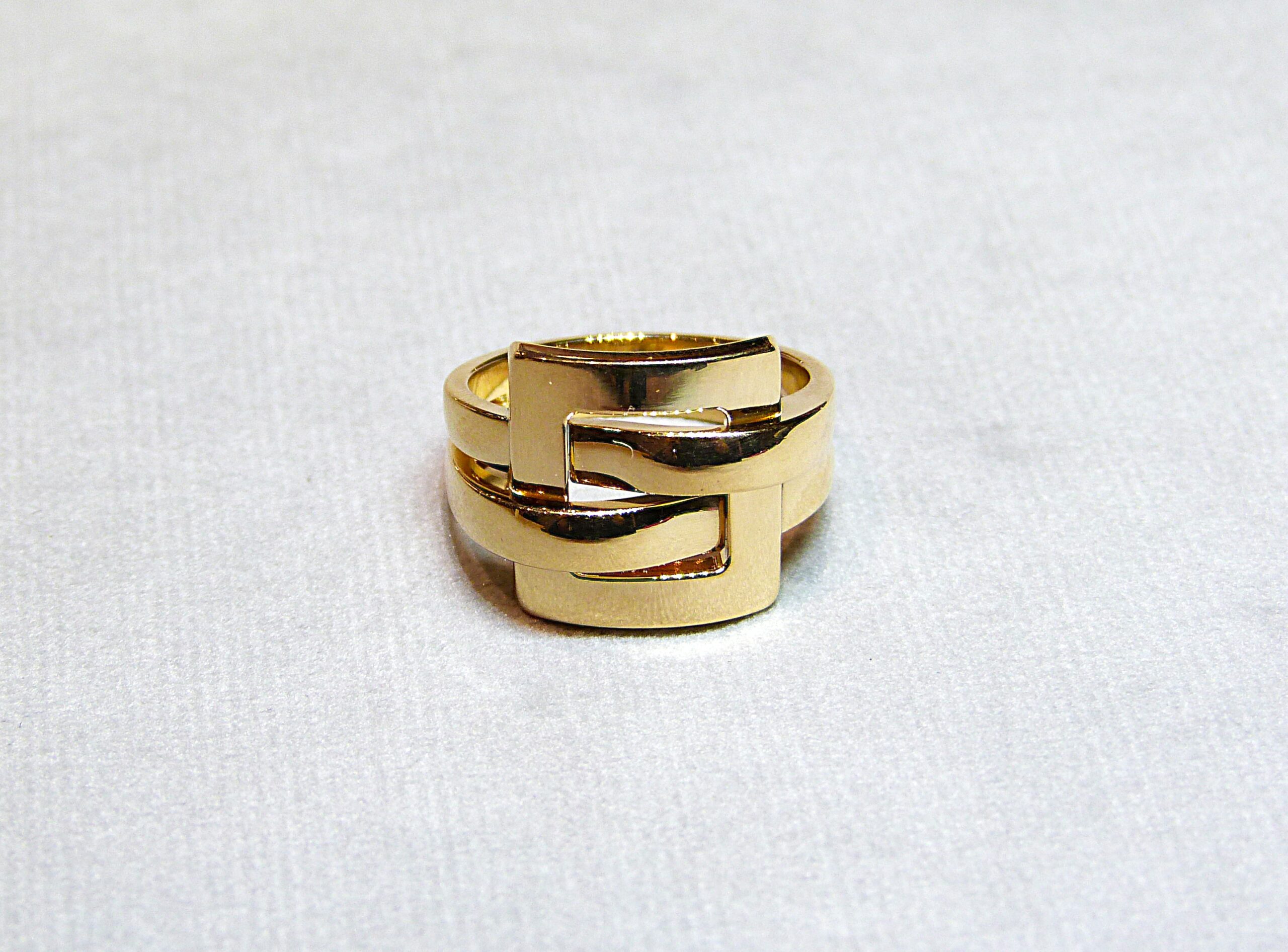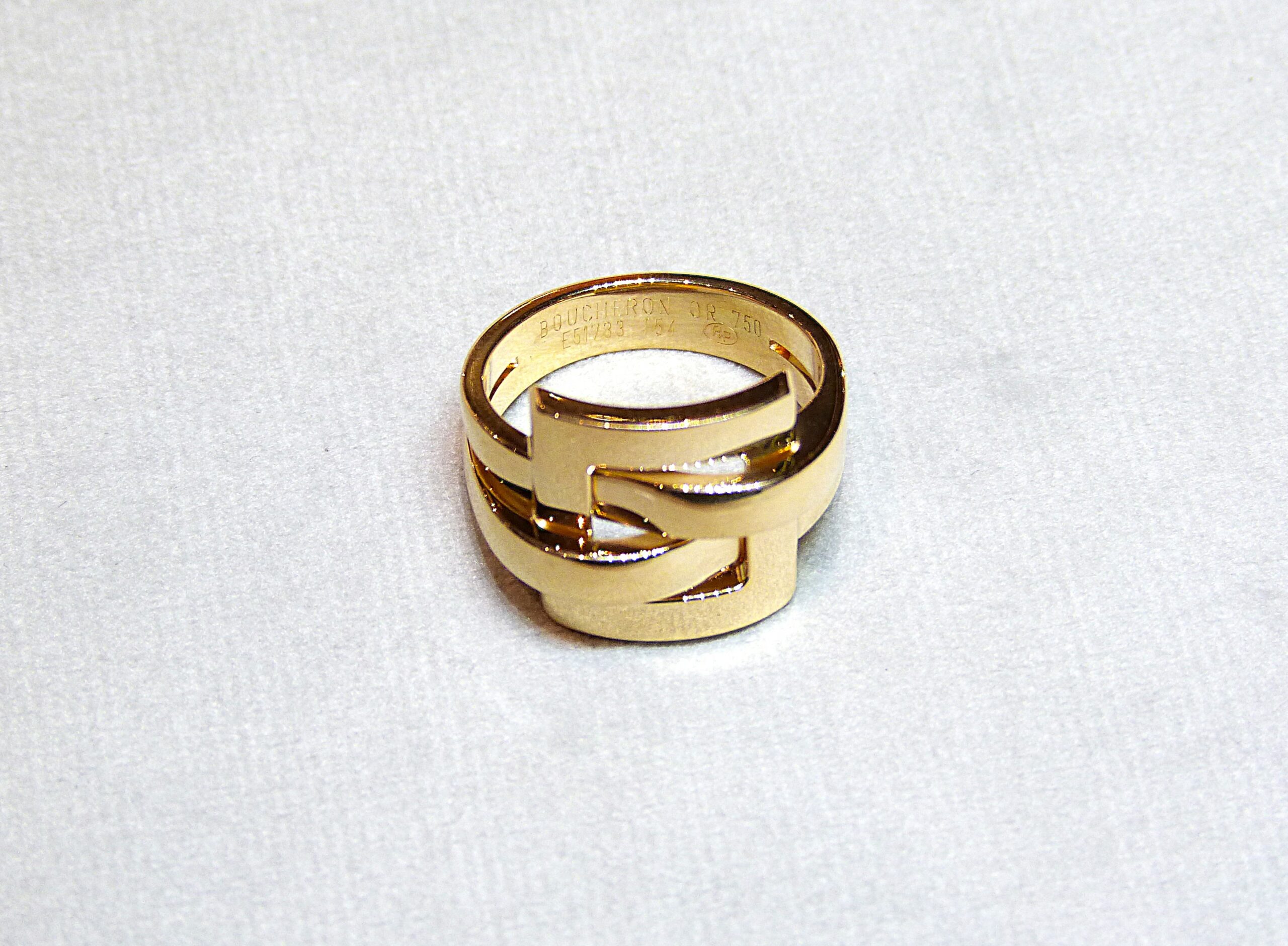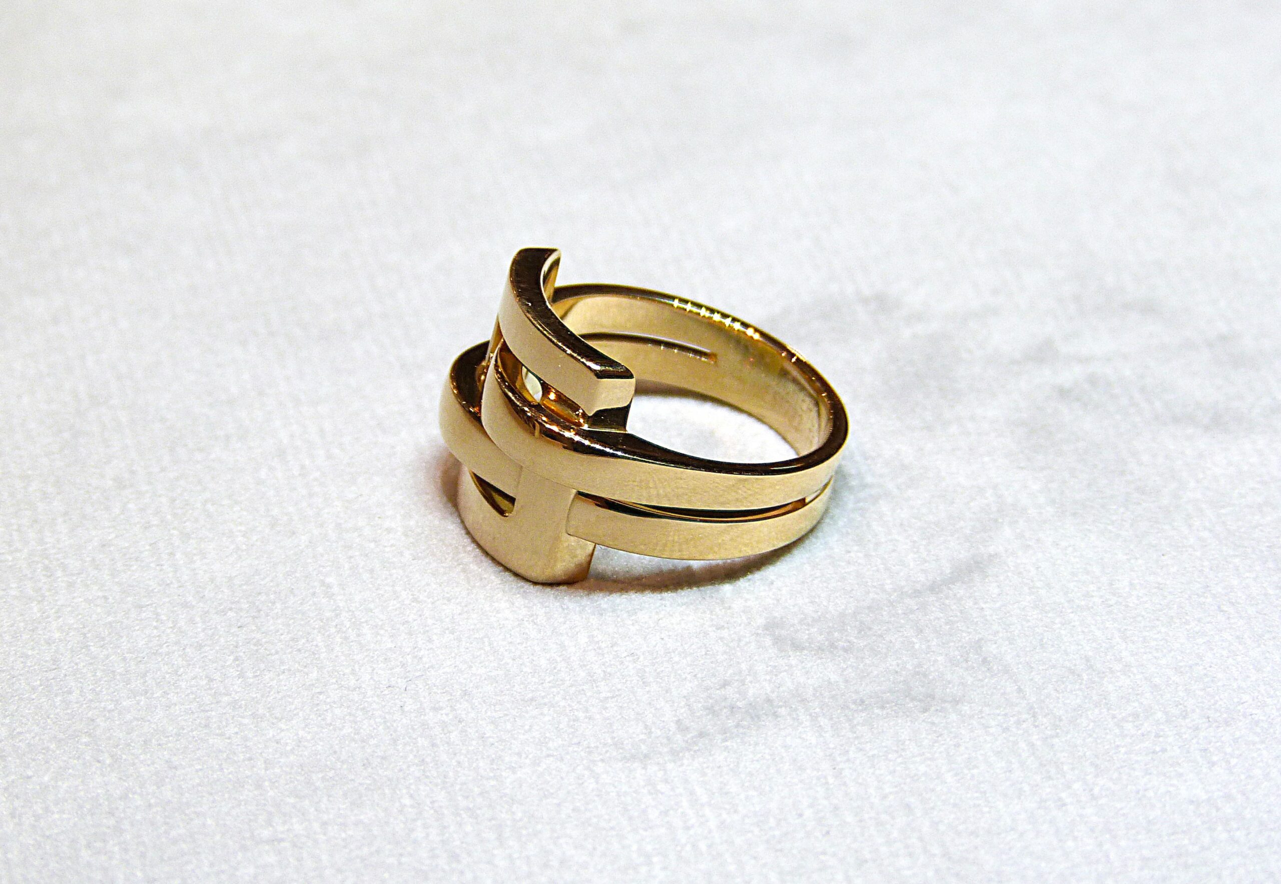 Bague en or jaune 750/1000ème ( 18 k ) ajouré à motifs carrés entrelacés.