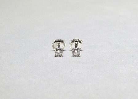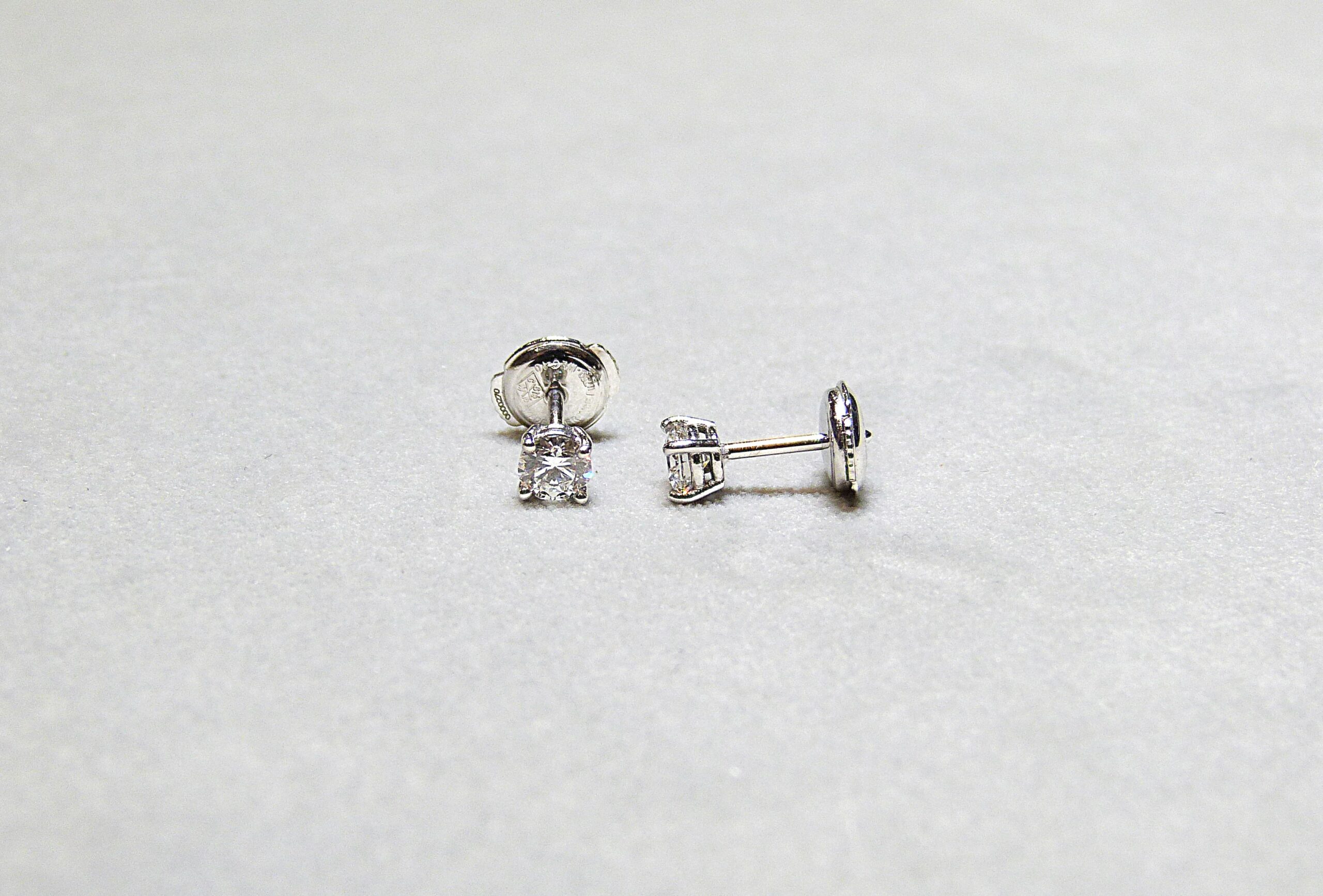Paire de clous d’oreilles en or gris 750/1000ème ( 18 k ) sertis de diamants taille brillant pesant chacun 0,32 carat, couleur F, pureté VS1.