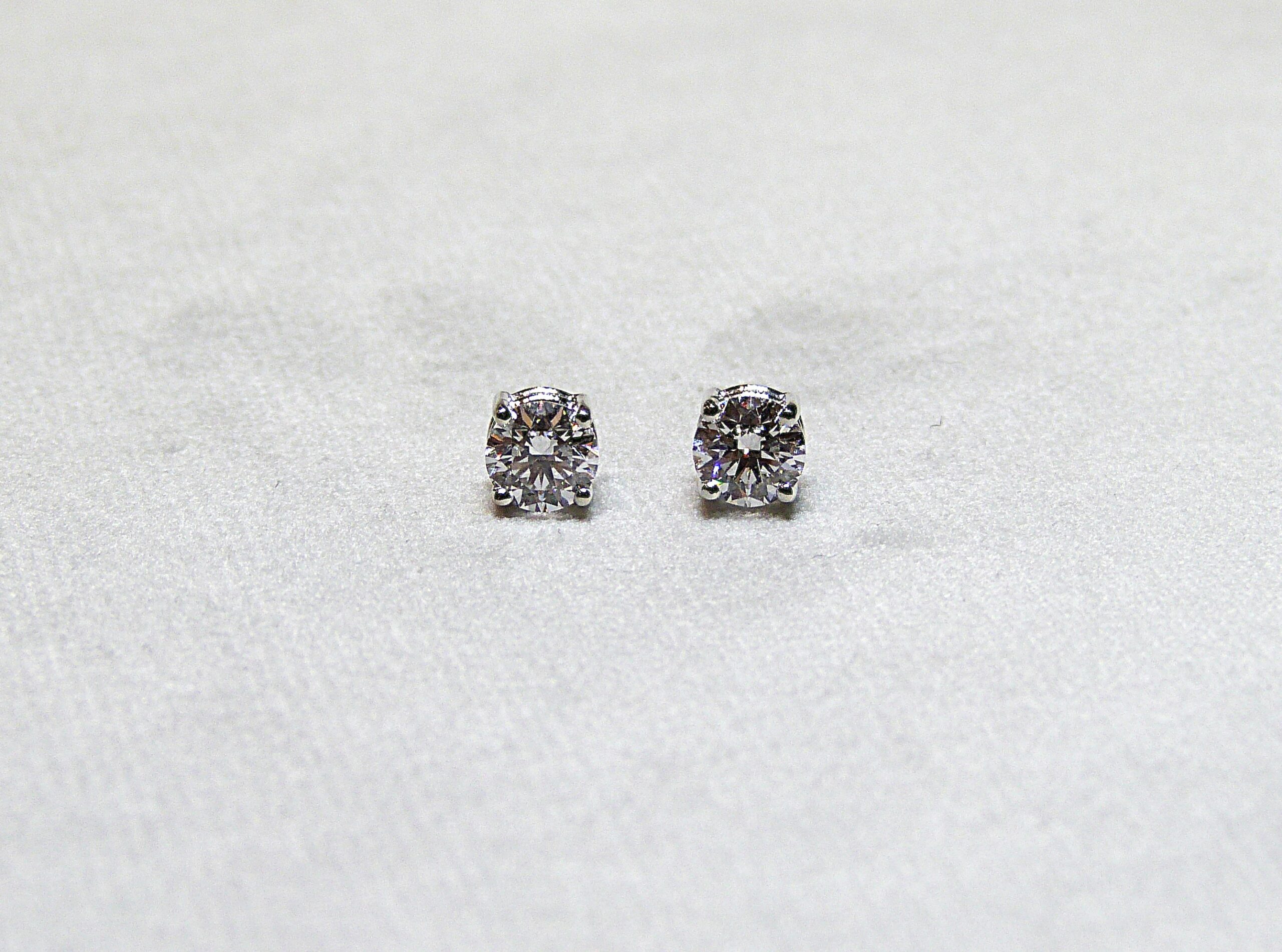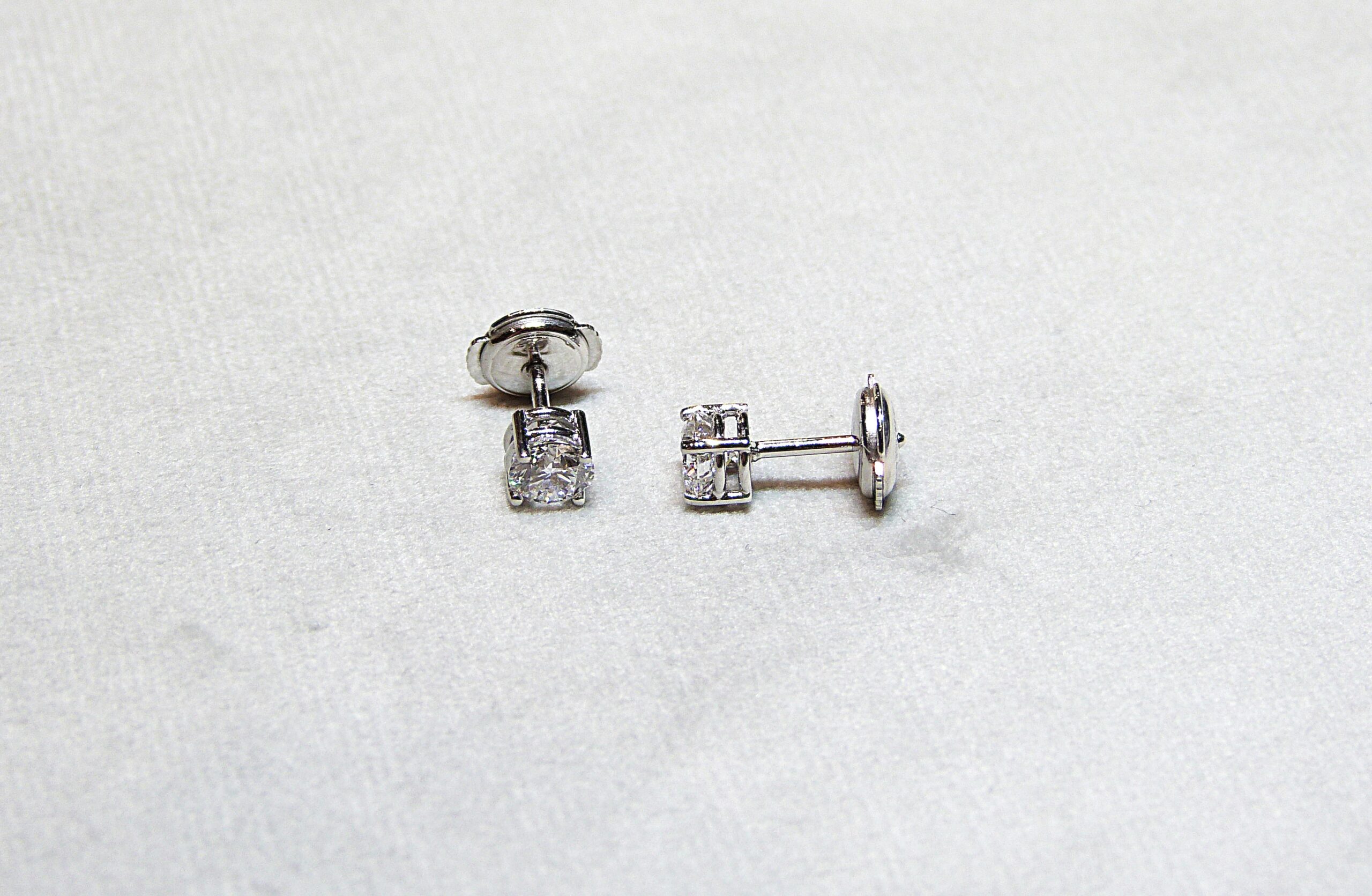 Paire de clous d’oreilles en or gris 750/1000ème ( 18 k ) sertis de diamants taille brillant pesant chacun 0,50 carat, couleur D, pureté VS2.