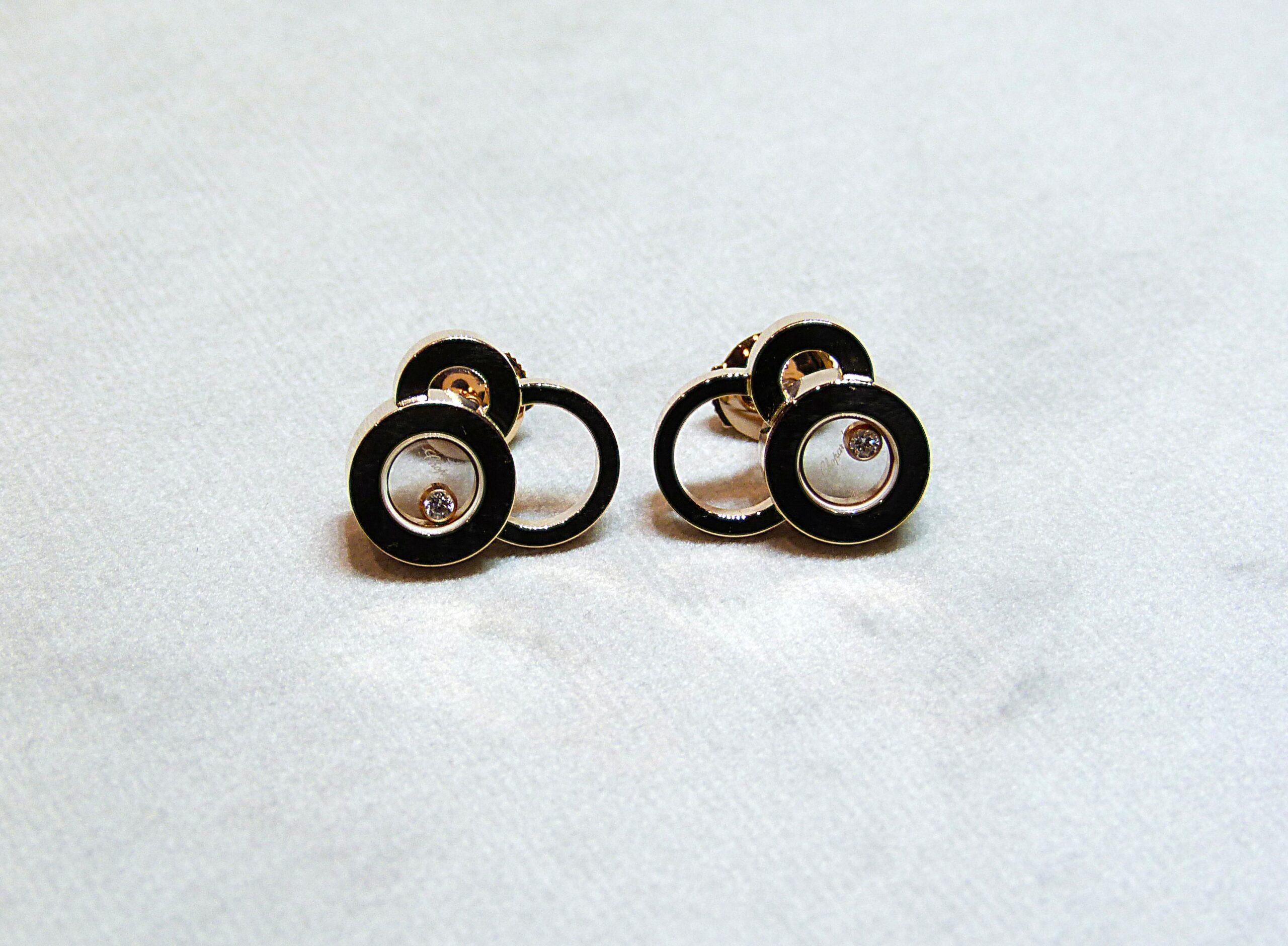 Paire de boucles d’oreilles en or rose 750/1000ème ( 18 k ) composées de plusieurs disques ajourés sertis de diamants pesant 0,04 carat environ.