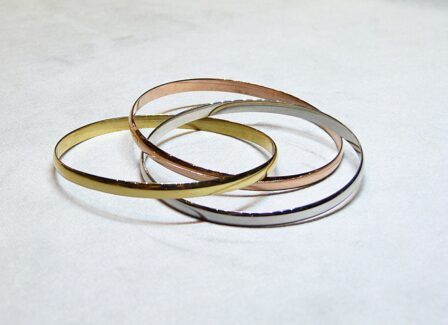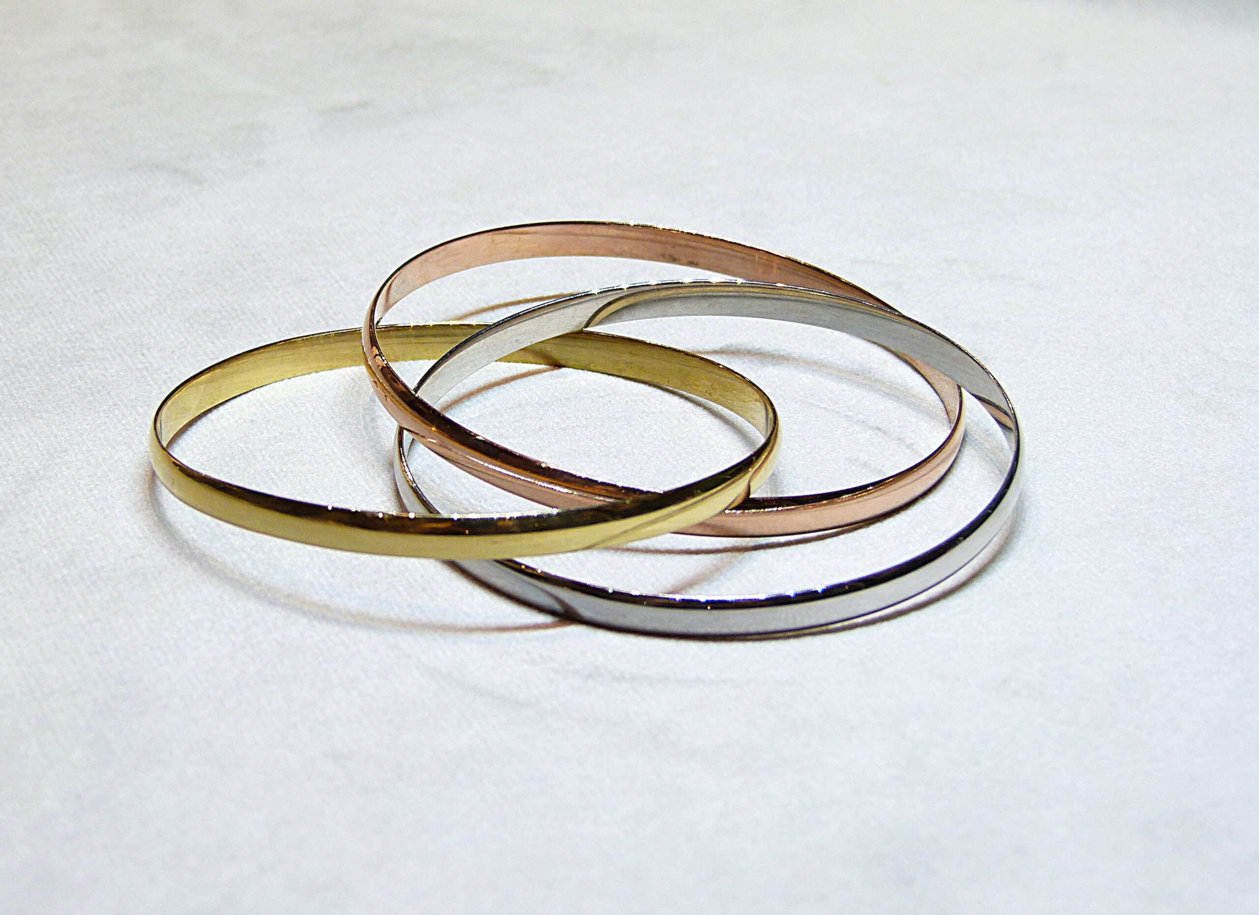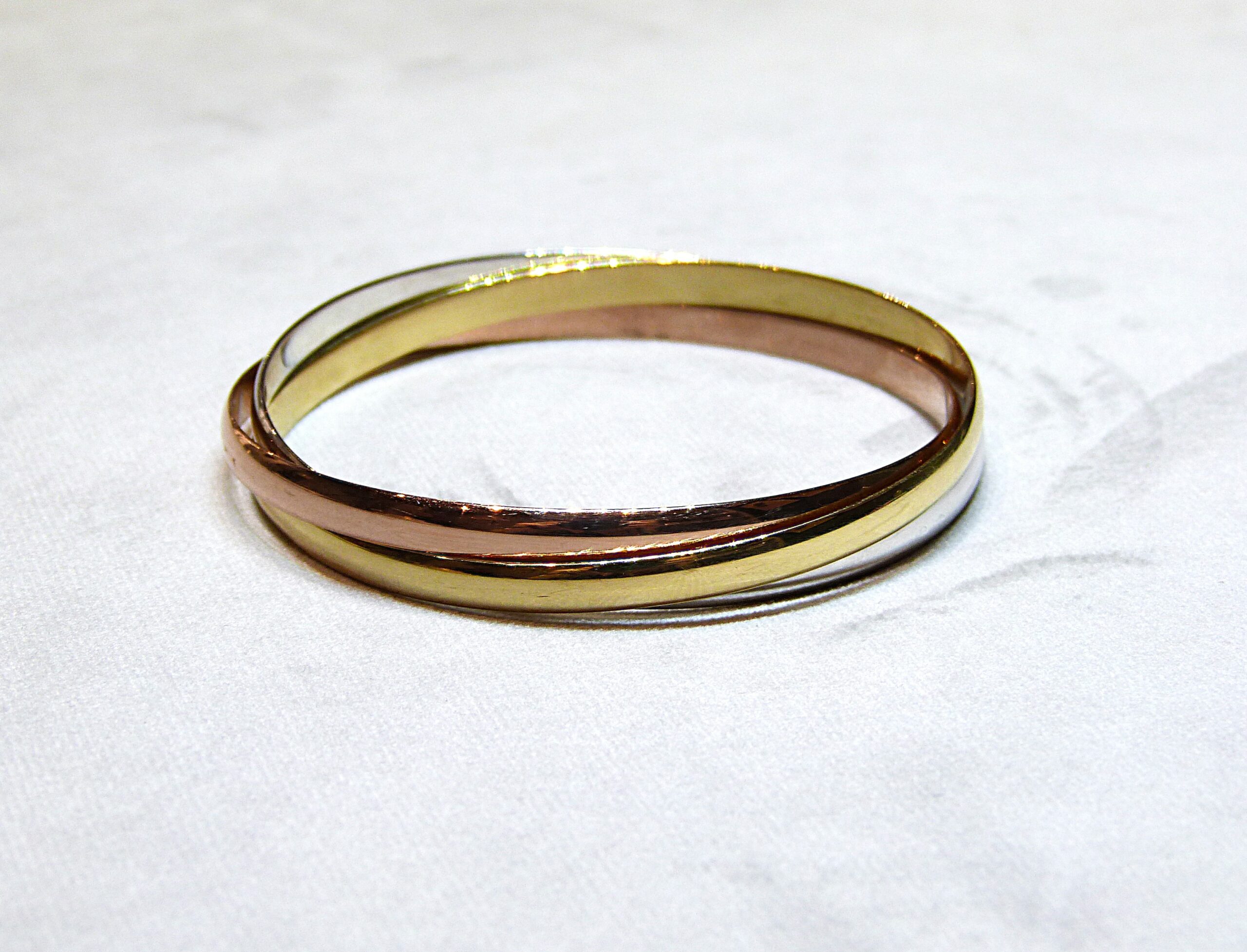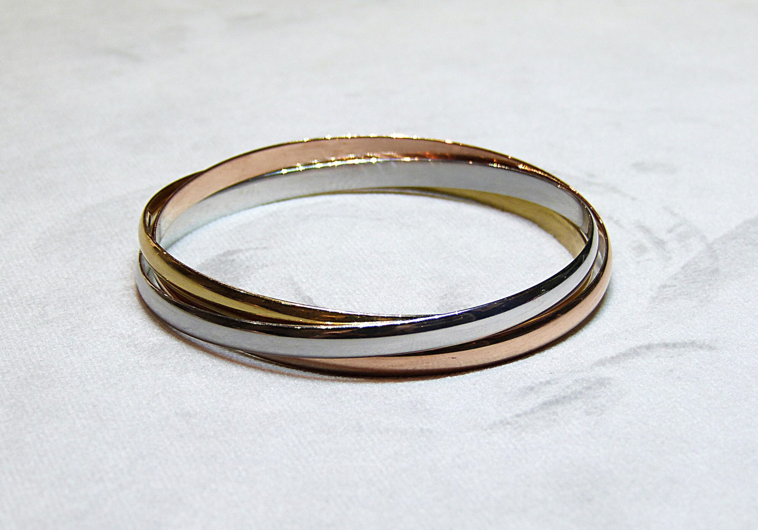 Bracelet rigide composé de 3 anneaux entrelacés en 3 ors 750/1000ème ( 18 k ).
