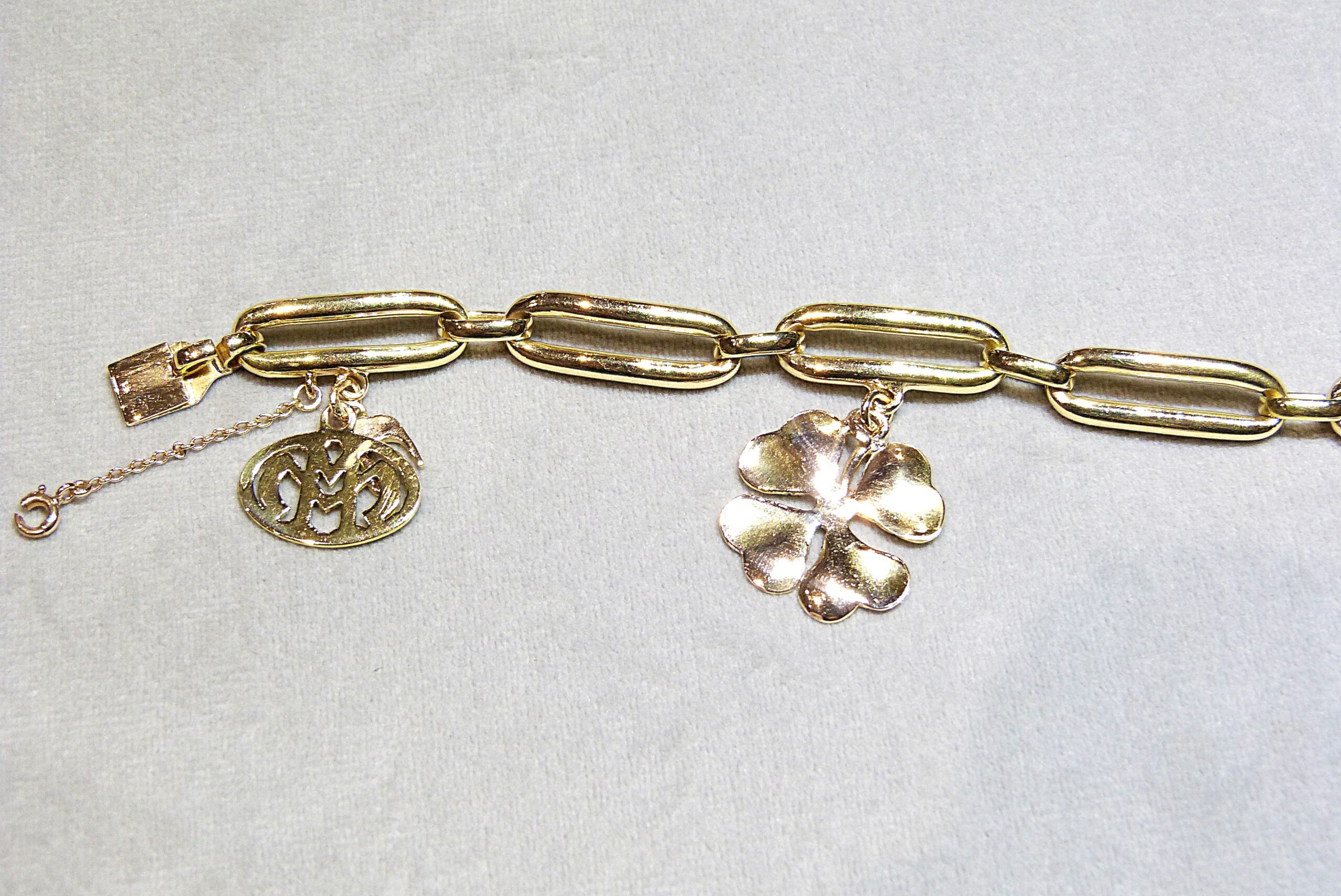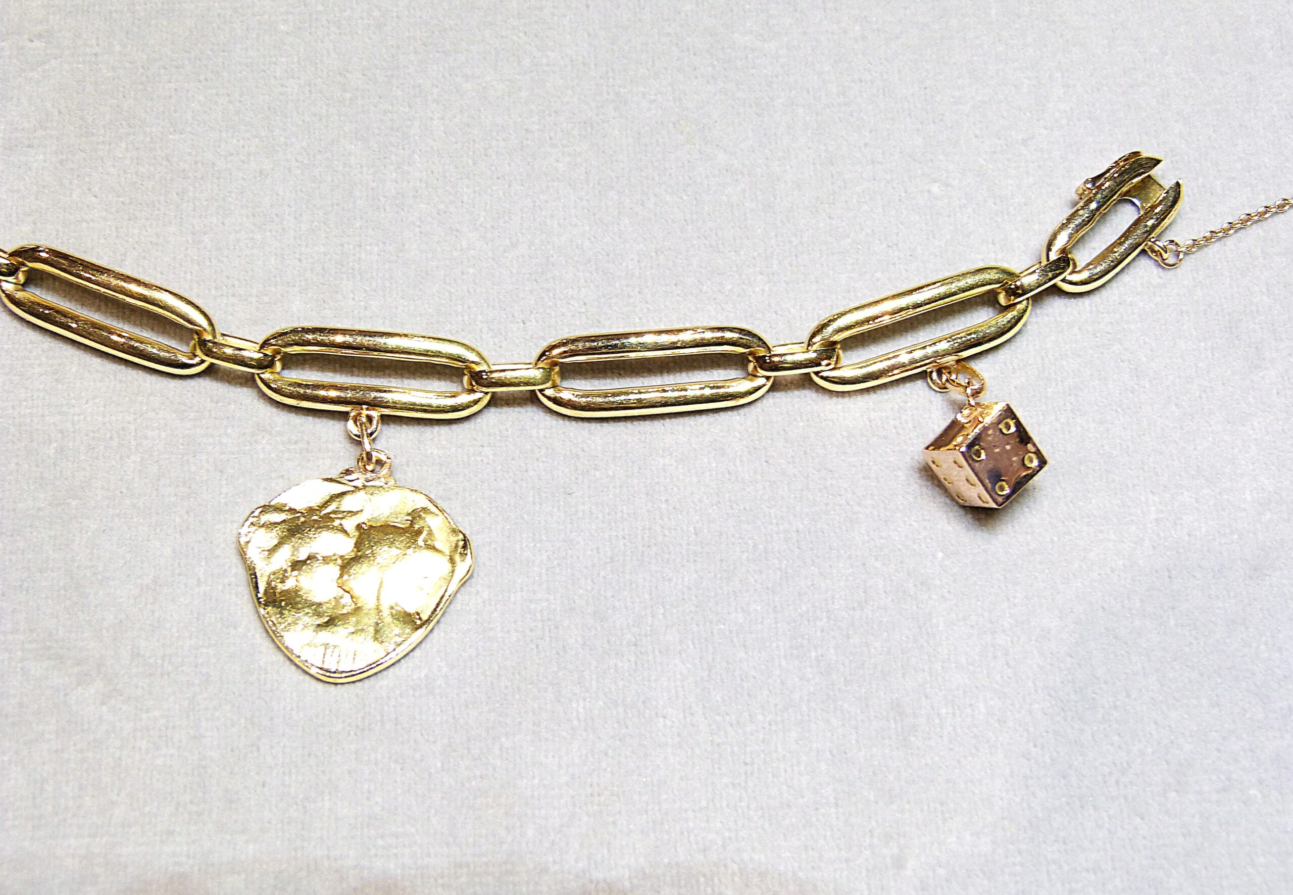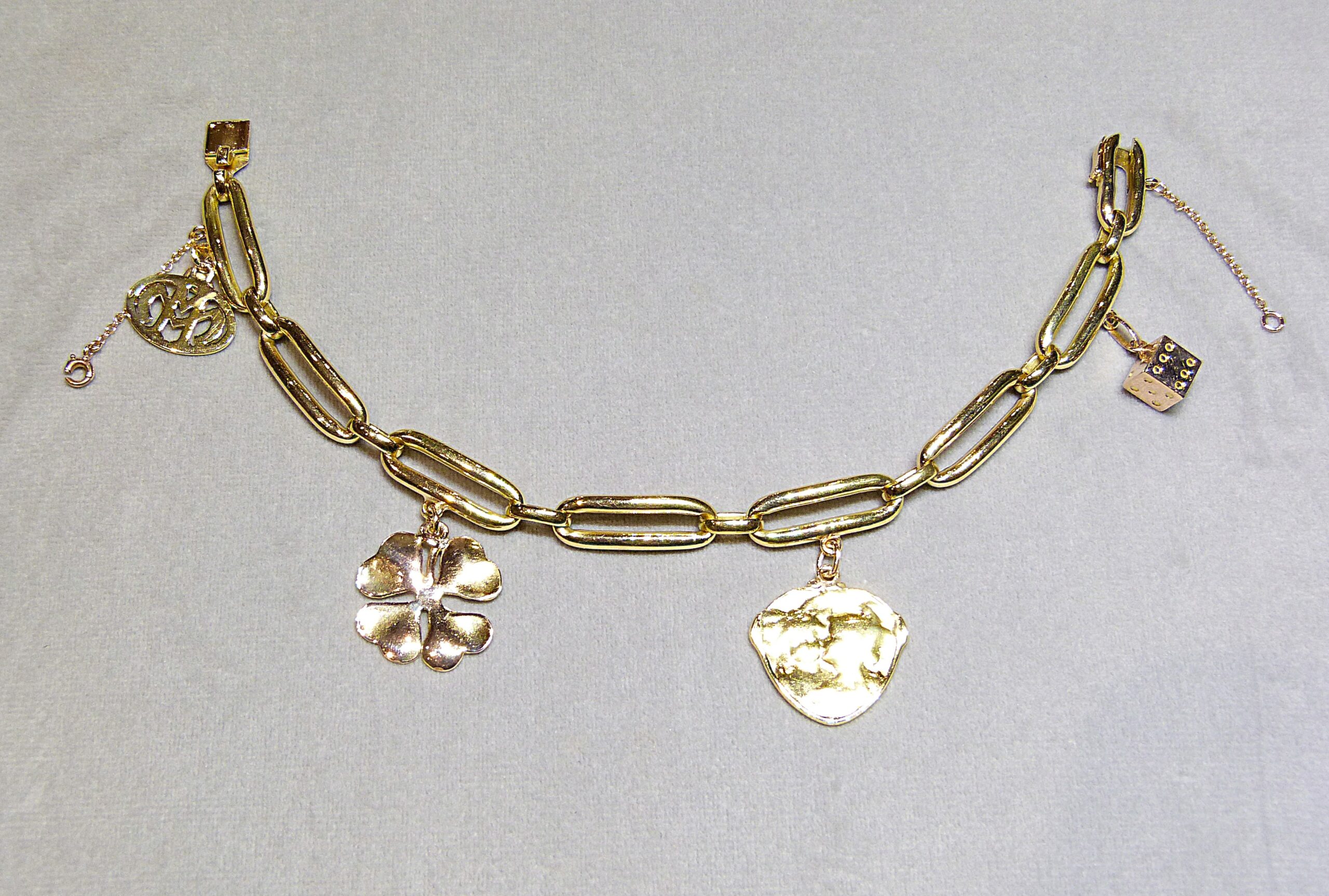 Bracelet gourmette en or jaune 750/1000ème ( 18 k ) à mailles oblongues orné de 5 charm’s.