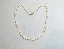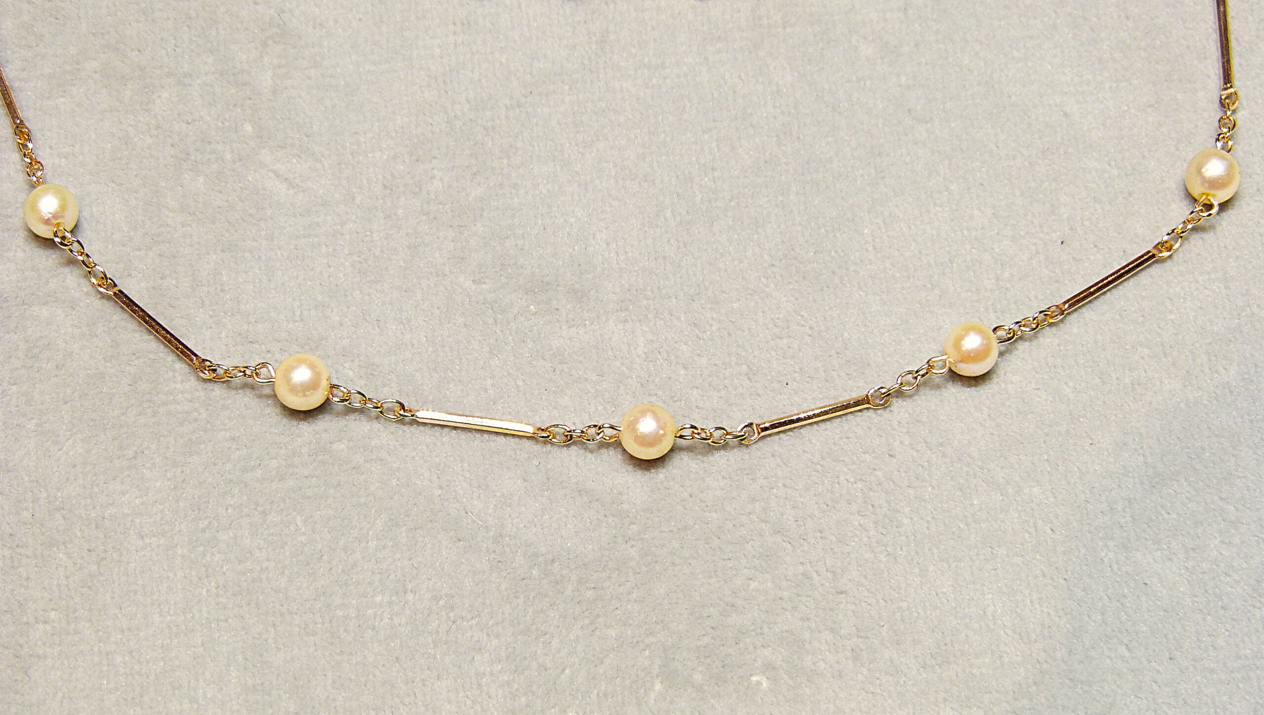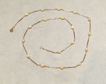 Collier en or jaune 750/1000ème ( 18 k ) à mailles bâtonnets entrecoupées de perles de culture de diamètre 4 mm.