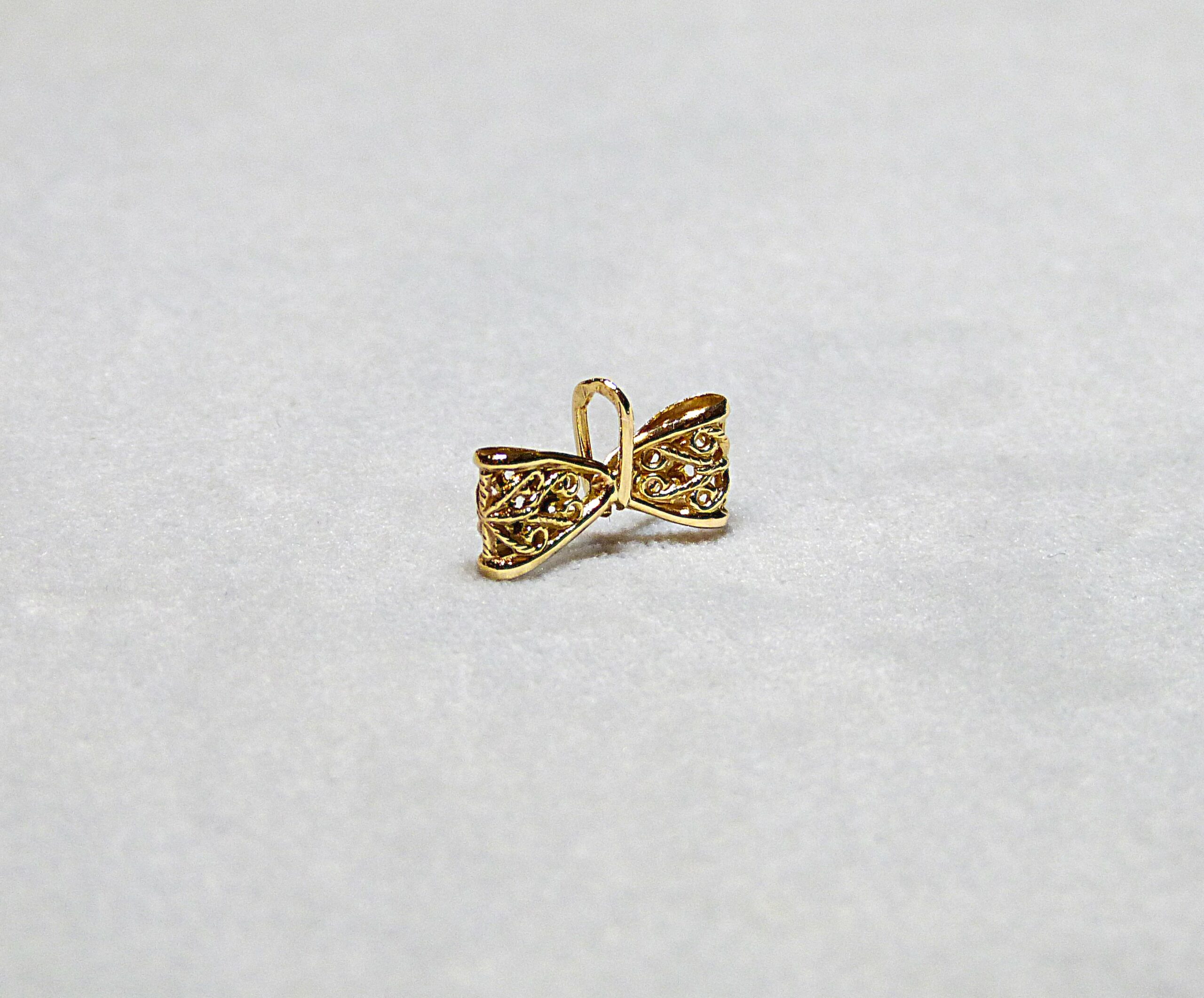 Cliquez pour agrandir Tweet 100 € quantité de Pendentif noeud or jaune Ajouter au panier Catégorie : Pendentifs Étiquettes : or 18 k, or 750, or filigrané, or jaune, pendentif, pendentif noeud Description Informations complémentaires Description Pendentif noeud en or jaune 750/1000ème ( 18 k ) ajouré filigrané. Informations complémentaires Poids 0.53 g Dimensions 1.4 × 1 cm Suggestions Ajouter au panierVoir le détail Pendentif or jaune miniature peinte 1 000 € Ajouter au panierVoir le détail Pendentif or jaune 900 € Ajouter au panierVoir le détail Pendentif or jaune rubis 560 €