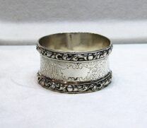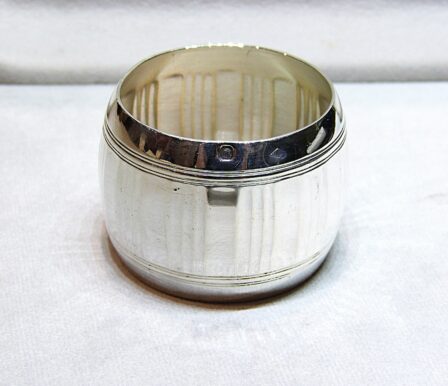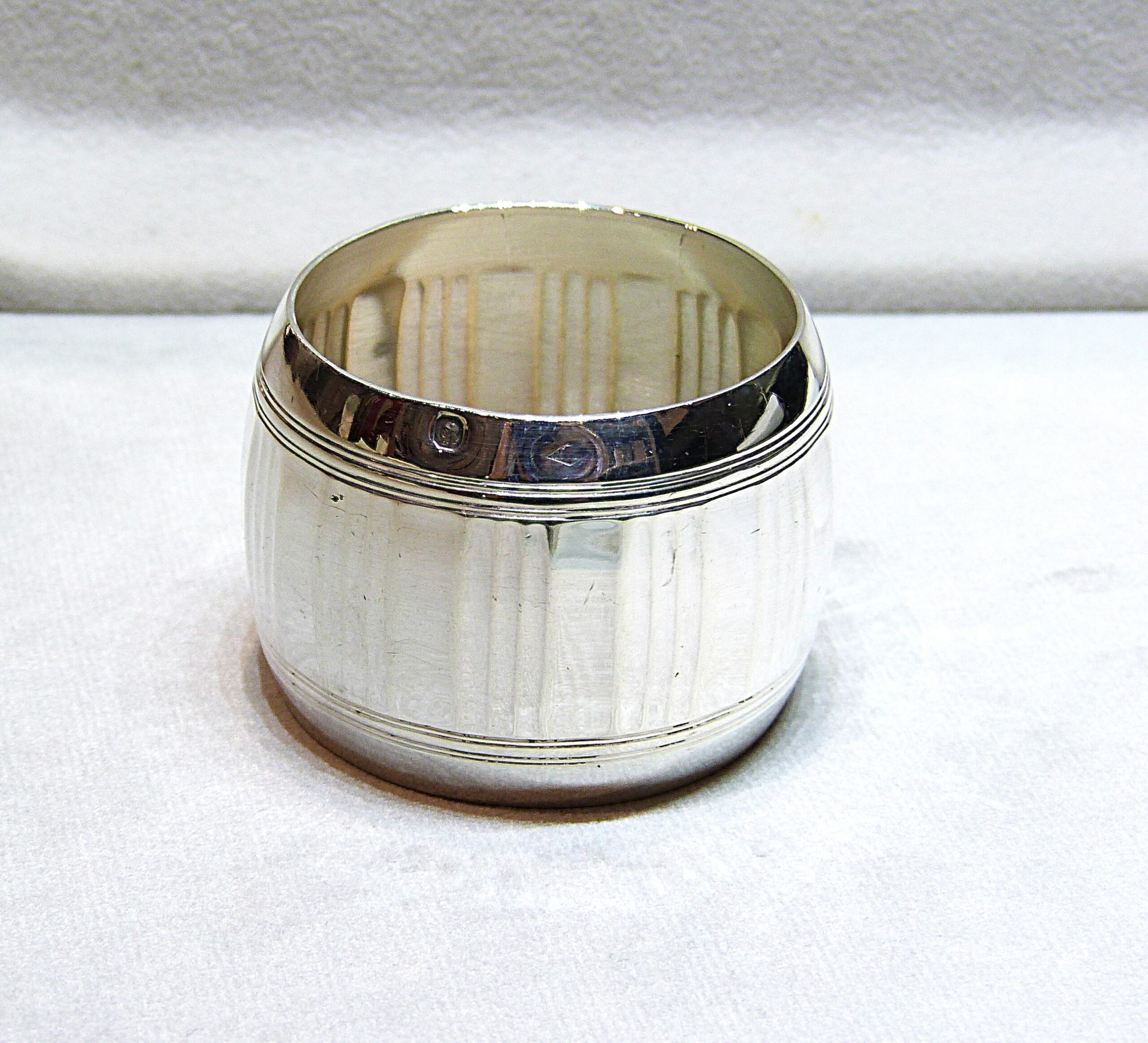 Rond de serviette de forme tonneau en argent 950/1000eme à décor gravé géométrique.