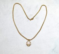 Sautoir en argent 800/1000ème maille forçat orné d’un coulant de style Art Nouveau serti de pierres vertes imitation.